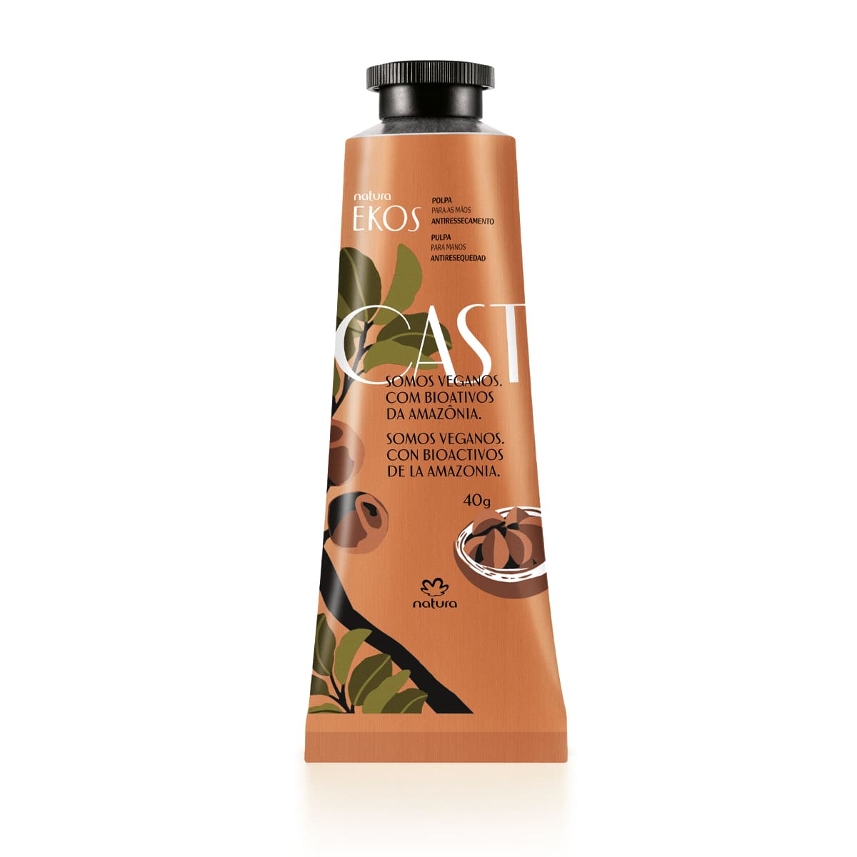 Rica em óleo bruto de castanha, a Polpa Hidratante para Mãos Ekos Castanha é uma grande aliada contra o ressecamento. Ela nutre intensamente, proporcionando uma melhora na textura da pele e das unhas. Esta versão de 40 g é ideal para carregar na bolsa e reforçar a hidratação ao longo do dia. Sua embalagem possui ilustração exclusiva da artista amazônida Winny Tapajós, que retrata o ciclo produtivo da castanha.